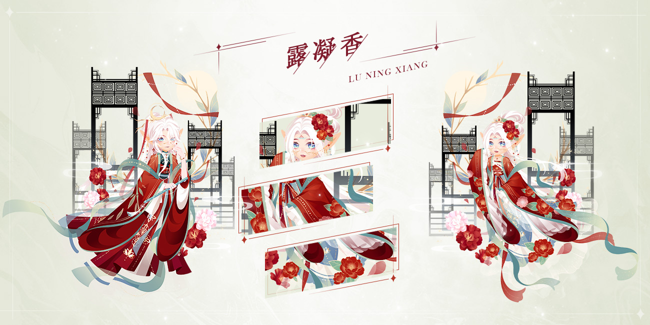 似共東風別有因,絳羅高卷不勝春。參與活動即可購買露凝香套裝。購買套裝還可獲贈名花扇子(女)/名花笛子(男)、名花頭發和“名花傾城兩相歡”稱號。