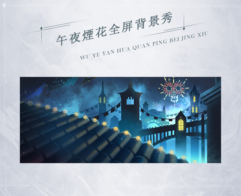 我們是擦肩而過的彗星,在燃燒殆盡之時分離。參與活動即有機會獲得月光下的告別套裝部件、碎金花毯舞台。集齊獎池還可獲贈:午夜煙花全屏背景秀(30天)、“月光下的告別”稱號、月光下的告別氣泡。